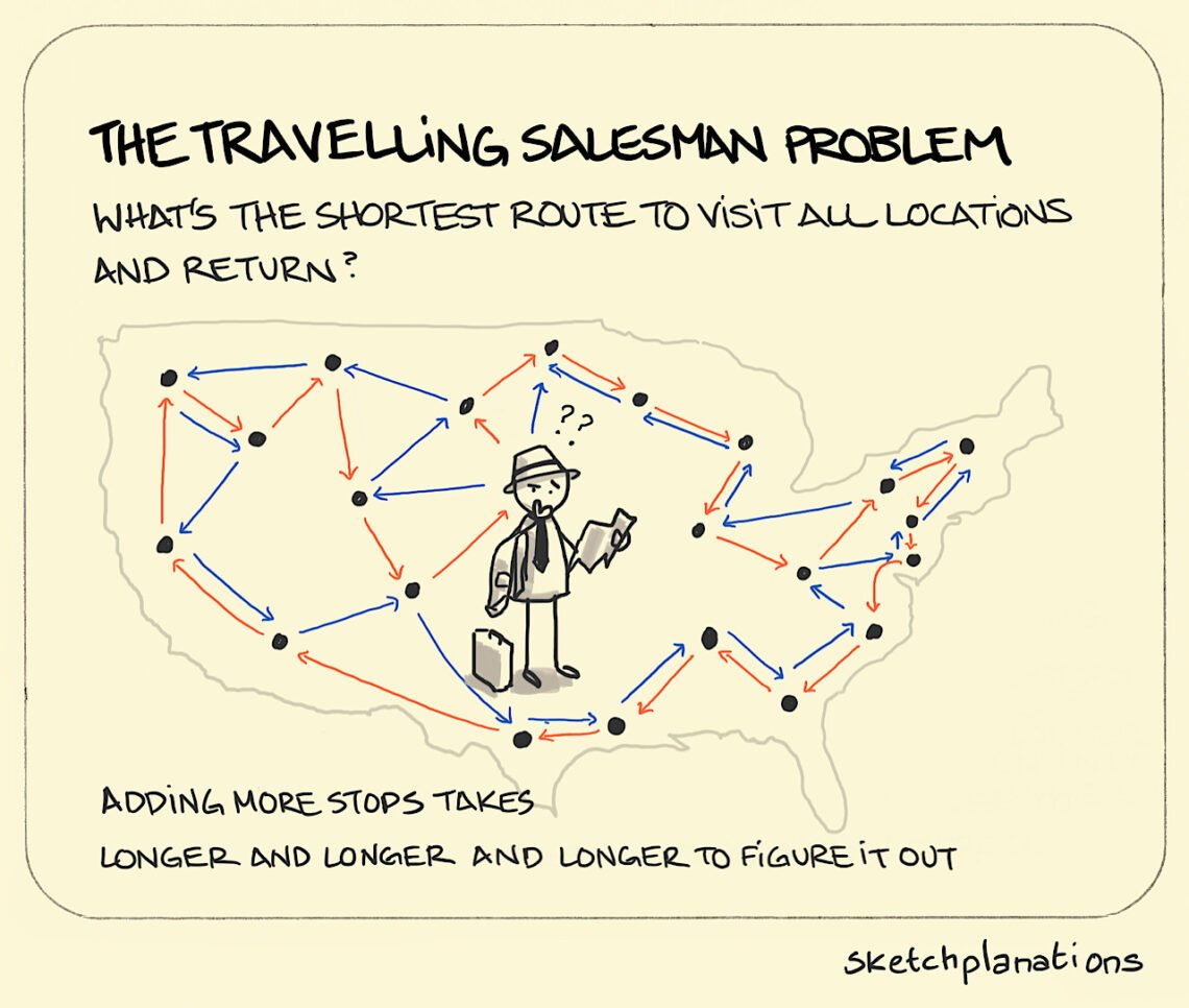 Example: Deliver pizza to 10 houses in the shortest path